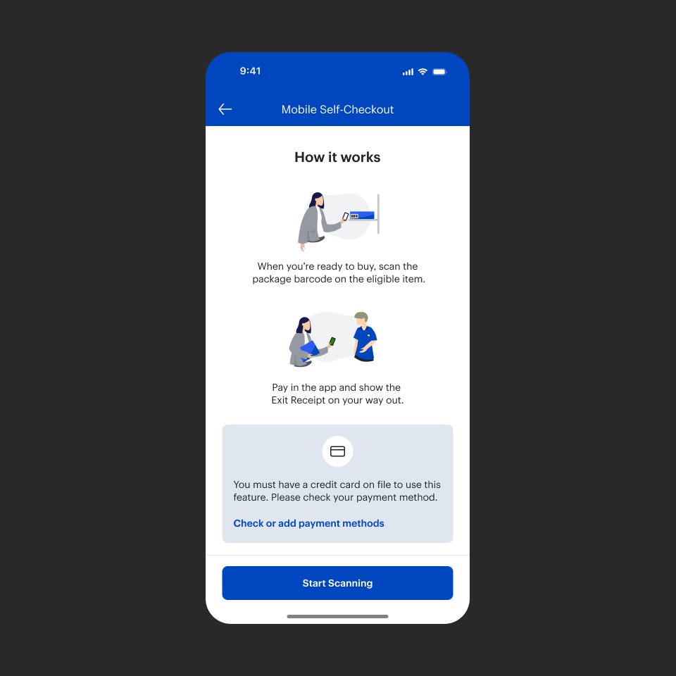 I helped launched a Mobile Self-Checkout feature to help customers scan, pay and exit quickly.